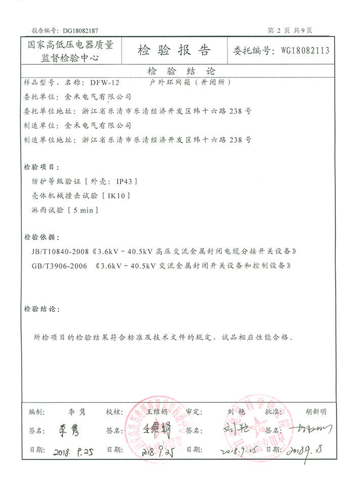 戶外環(huán)網(wǎng)箱(開閉所)檢驗(yàn)報(bào)告